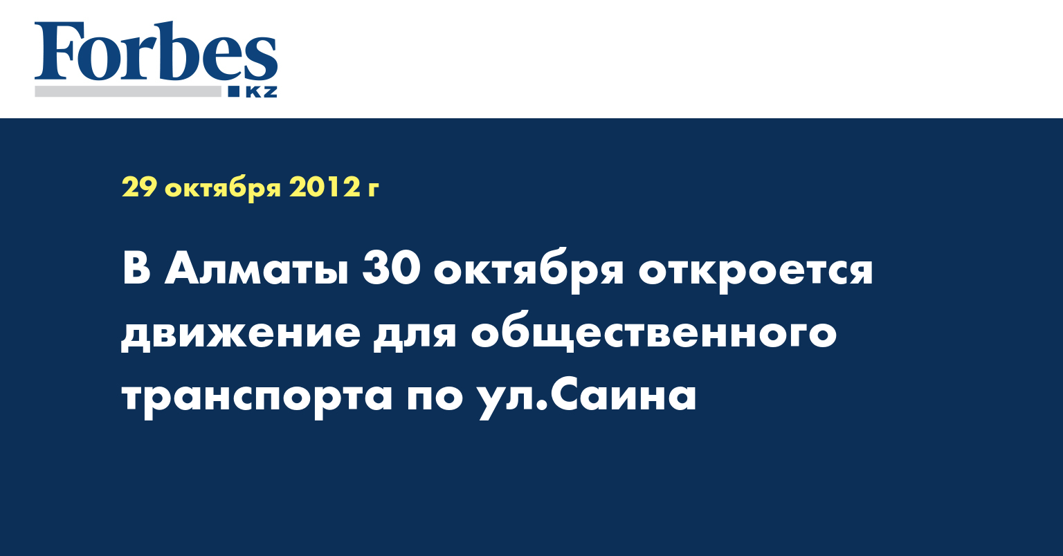 «30 октября открывается движение для общественного транспорта по ул. Саина на транспортной развязке Саина - Торайгырова, таким образом, будет открыт один из основных проездов по магистралям», - говорится в сообщении, распространенном в понедельник, передает КазТАГ.