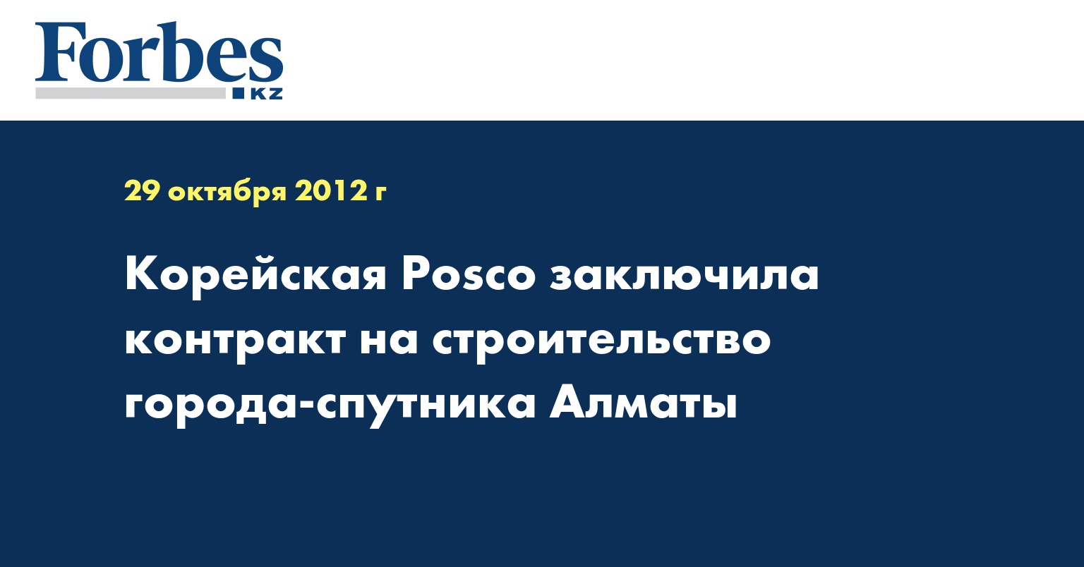 Корейская Posco Engineering & Construction заключила с казахстанской Caspian Group контракт на $640 млн на строительство города-спутника Алматы, сообщил universalnewswires.