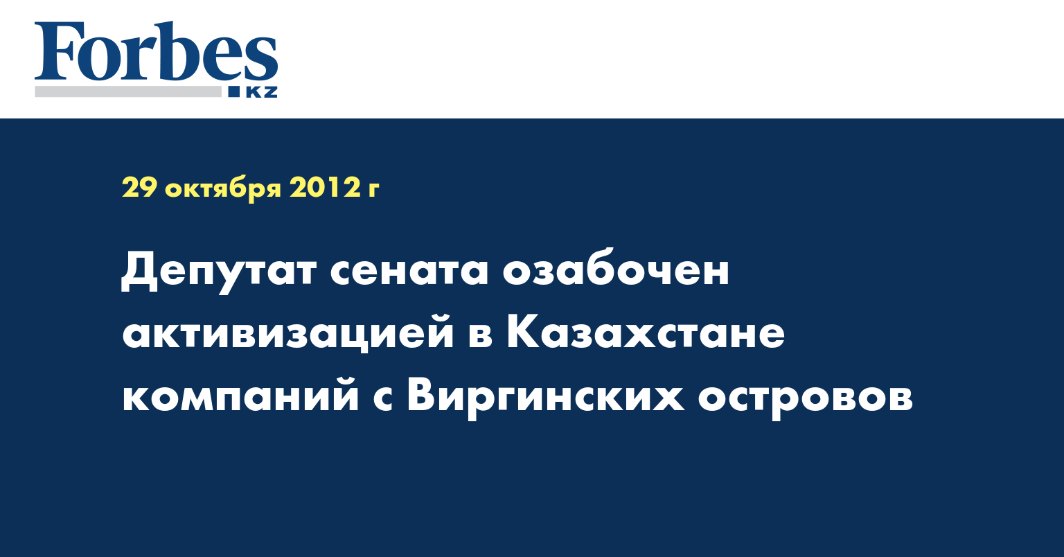Депутат сената парламента РК Александр Савченко озабочен активизацией в Казахстане компаний с Виргинских островов, передает КазТАГ.
