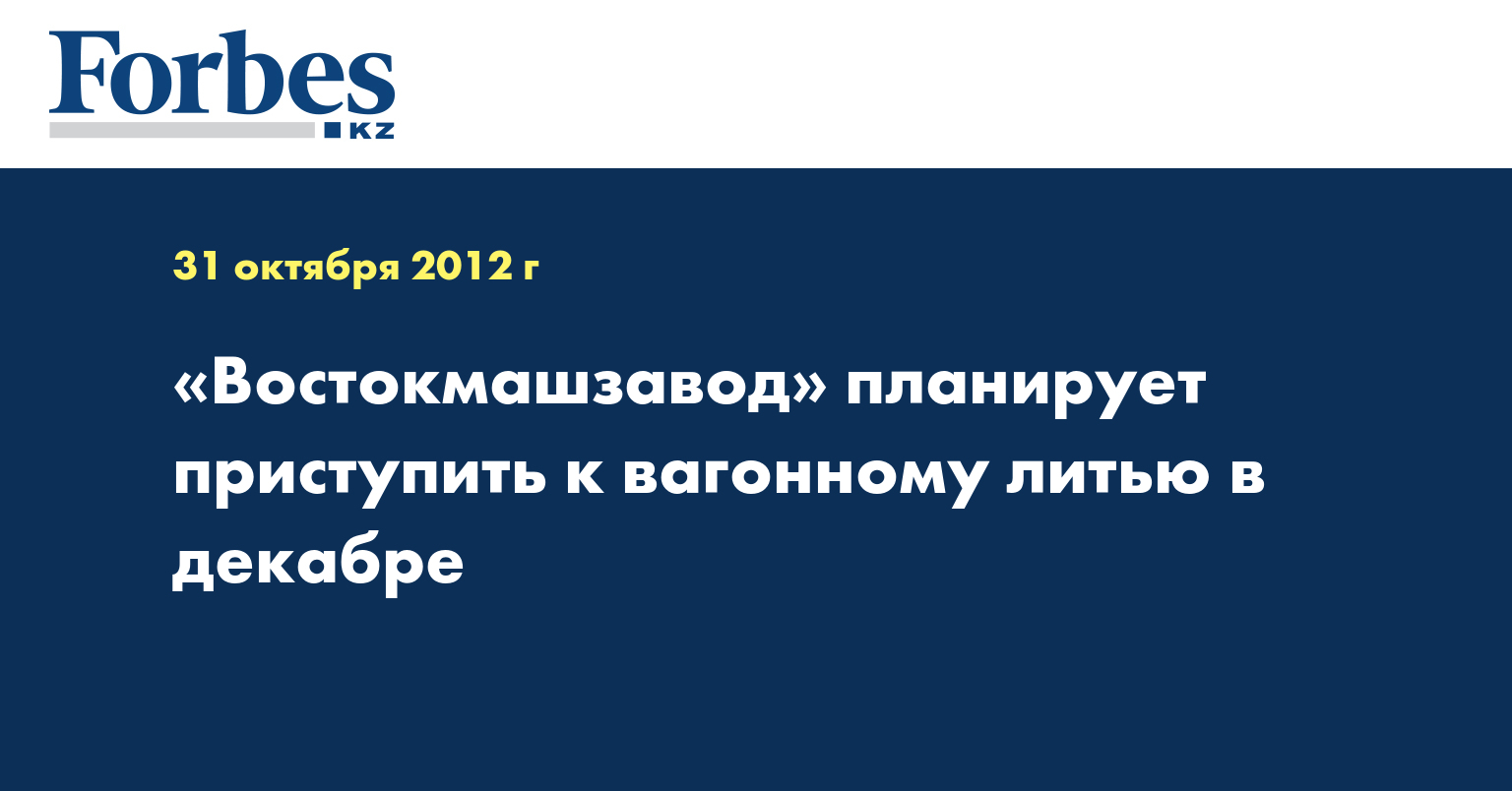 АО «Востокмашзавод» планирует приступить к производству стального вагонного литья в декабре текущего года, сообщил корреспондент КазТАГ.