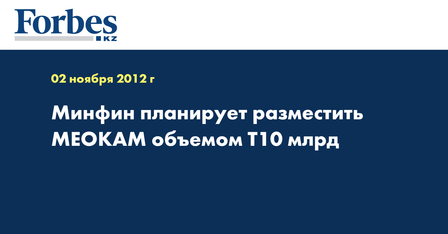 «5 ноября на KASE состоятся специализированные торги по размещению МЕОКАМ-48 выпуска 49», - указывается в сообщении, опубликованном на сайте биржи в пятницу.