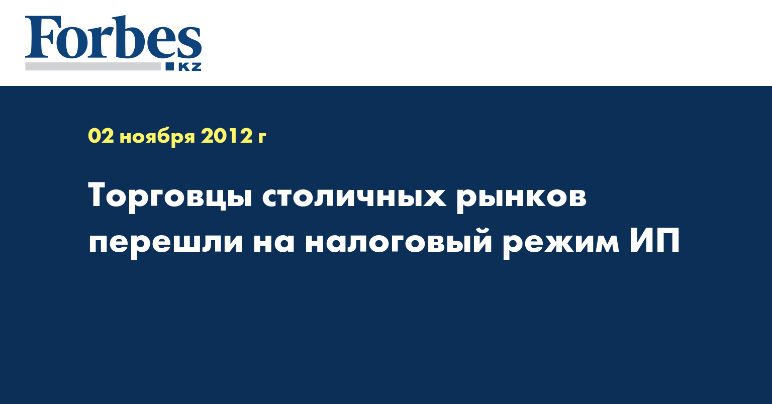 Более 6 тыс. торговцев на рынках столицы перешли на налоговый режим индивидуального предпринимателя (ИП) за 6 мес., сообщила пресс-служба налогового комитета министерства финансов РК, которую цитирует КазТАГ.