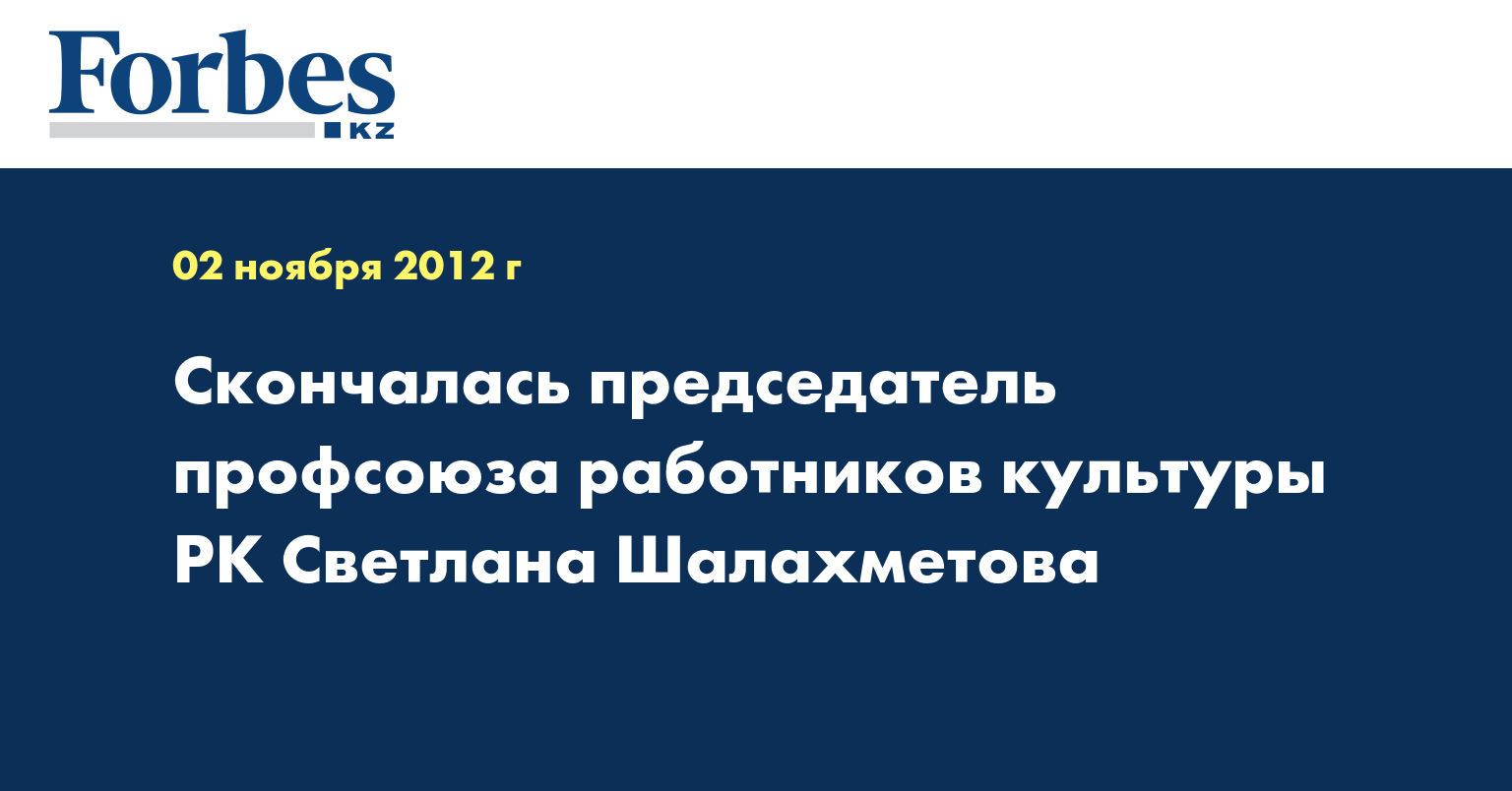 В Алматы на 68-м году жизни скончалась председатель профсоюза работников культуры Казахстана Светлана Шалахметова, передает КазТАГ.