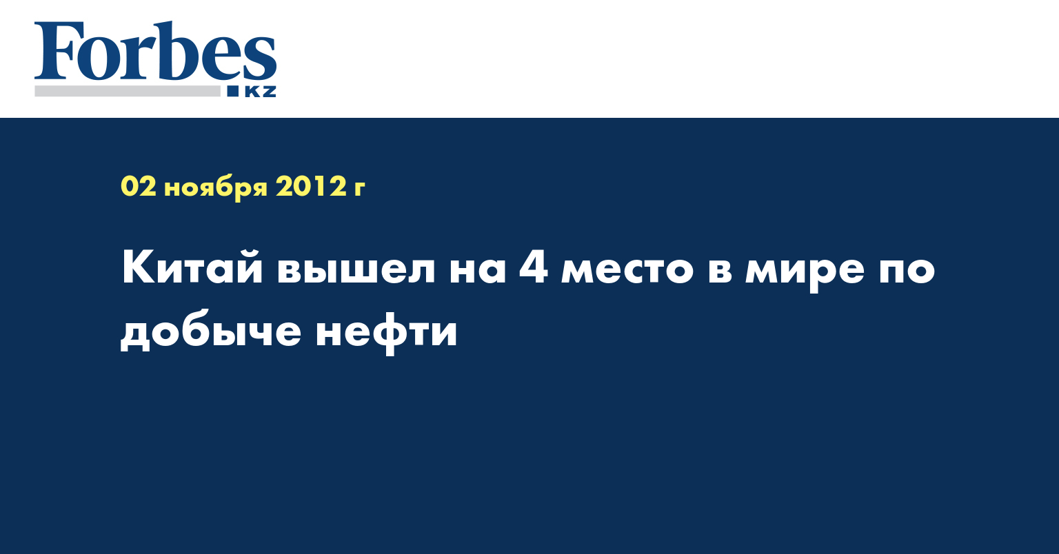 Китай добыл 203 млн тонн нефти в 2011 году, поднявшись на 4 место в мире, сообщил КазТАГ со ссылкой на агентство «Синьхуа».
