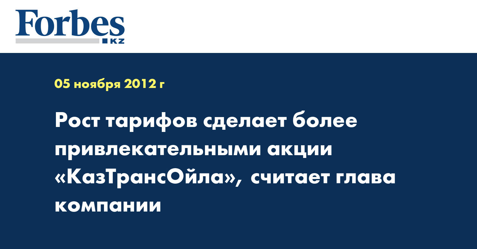 Рост тарифов на услуги АО «КазТрансОйл» (КТО) приведет к росту стоимости акций и хорошим дивидендам, сообщил генеральный директор АО «КазТрансОйл» Каиргельды Кабылдин.