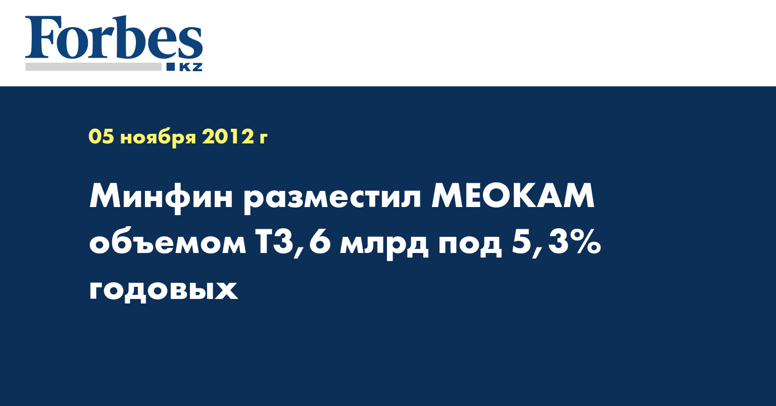 «Министерство финансов Казахстана разместило на KASE 5 ноября 3,6 млн МЕОКАМ-48 выпуска 49… под 5,3% годовых», - указывается в сообщении, опубликованном на сайте биржи.