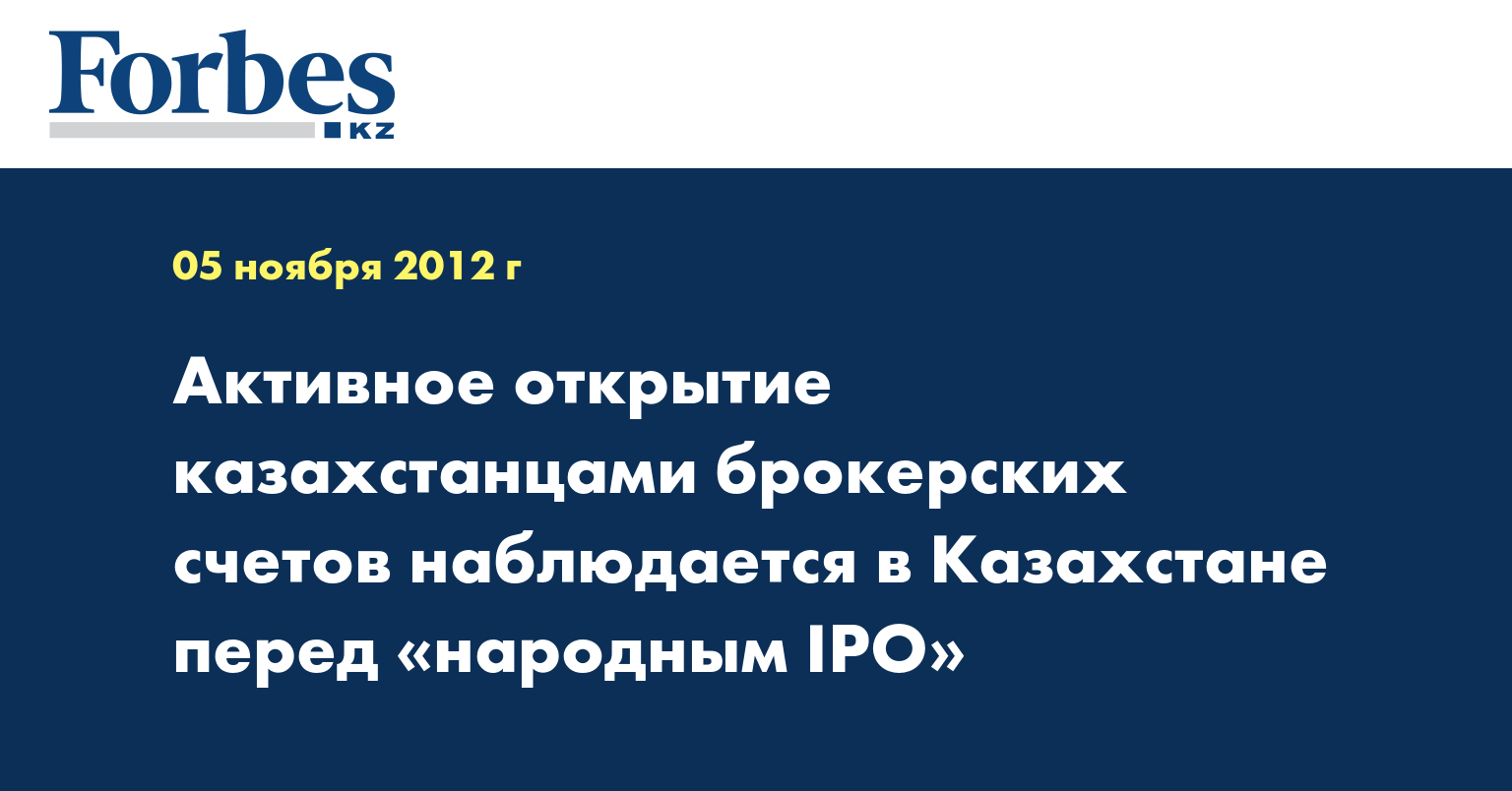 Программа «народное IPO» рассчитана до 2015 года и предусматривает поэтапный вывод на фондовый рынок акций наиболее крупных и стабильных государственных компаний. Первым на IPO выйдет АО «КазТрансОйл».