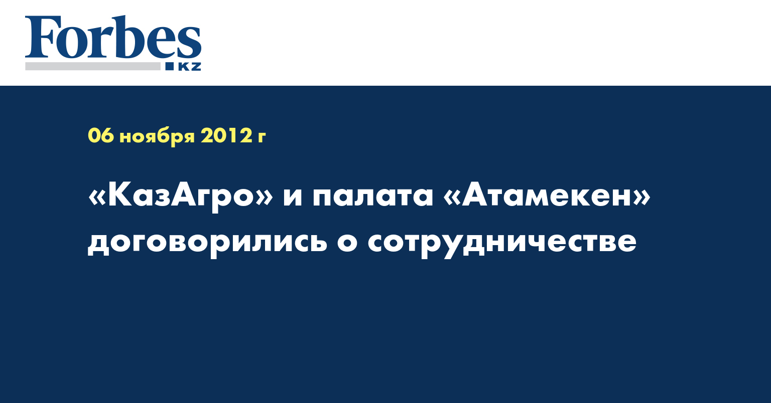 «В Астане меморандум о сотрудничестве подписан между «КазАгро» и «Союзом «Атамекен». Главная цель соглашения между нацхолдингом и общественным объединением – повышение эффективности реализуемой государственной политики в сфере агропромышленного комплекса и содействие в обеспечении благоприятных условий развития сельского хозяйства в республике», - отмечается в пресс-релизе, распространенном во вторник.