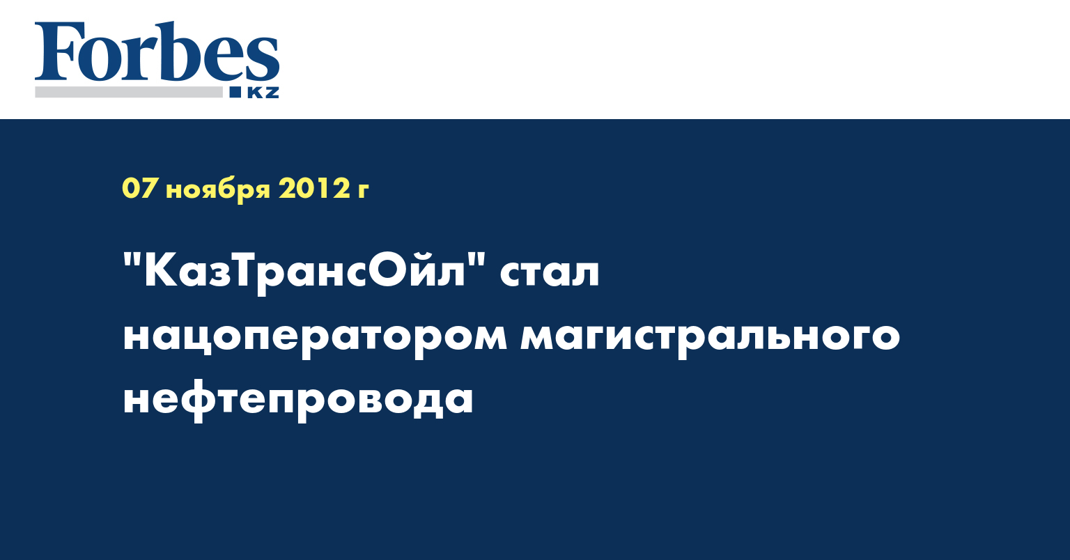 «В соответствии с постановлением правительства Республики Казахстан от 8 октября 2012 года №1273 АО «КазТрансОйл» определено национальным оператором по магистральному нефтепроводу», - говорится в пресс-релизе компании.
