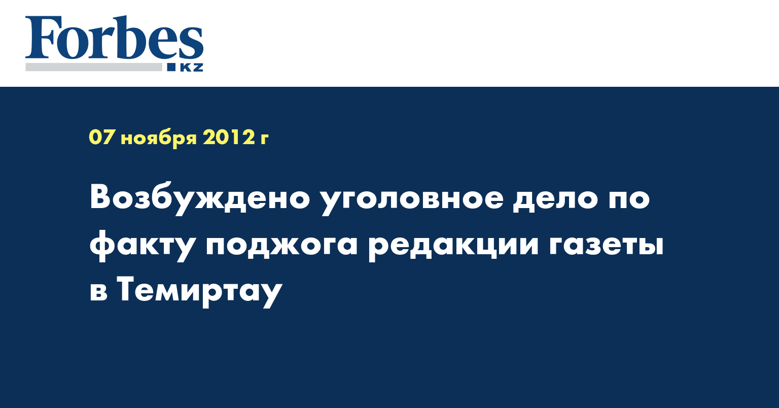 «Все признаки того, что в редакции был поджог, имеются. Разбиты два стекла. Изъяты фрагменты разбитых бутылок. Проводятся экспертизы на предмет того, что именно находилось в бутылках. Принимая во внимание, что имеются признаки преступления по ст. 188 ч. 2 УК РК – умышленное уничтожение или повреждение чужого имущества путем поджога, органами внутренних дел Темиртау по указанию прокуратуры возбуждено уголовное дело», - сказал Д. Каржаспаев в среду.
