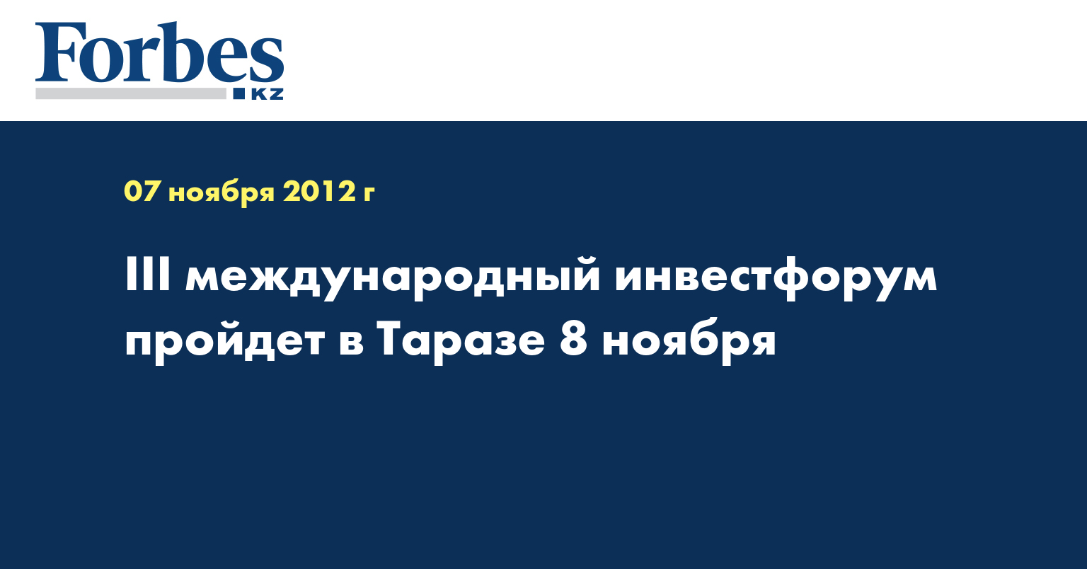 Третий международный форум «Тaraz Invest-2012» пройдет в областном центре Жамбылской области 8 ноября, сообщила пресс-служба областного акимата.