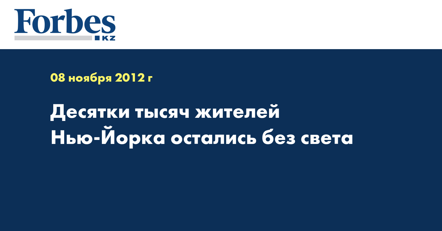 Десятки тысяч жителей штатов Нью-Йорк, Нью-Джерси и Коннектикут, пострадавших из-за урагана "Сэнди", остались 7 ноября без света из-за снежной бури. Так, только в городе Нью-Йорк, по данным Lenta.ru, зафиксированы около 48 тысяч отключений электроэнергии.
