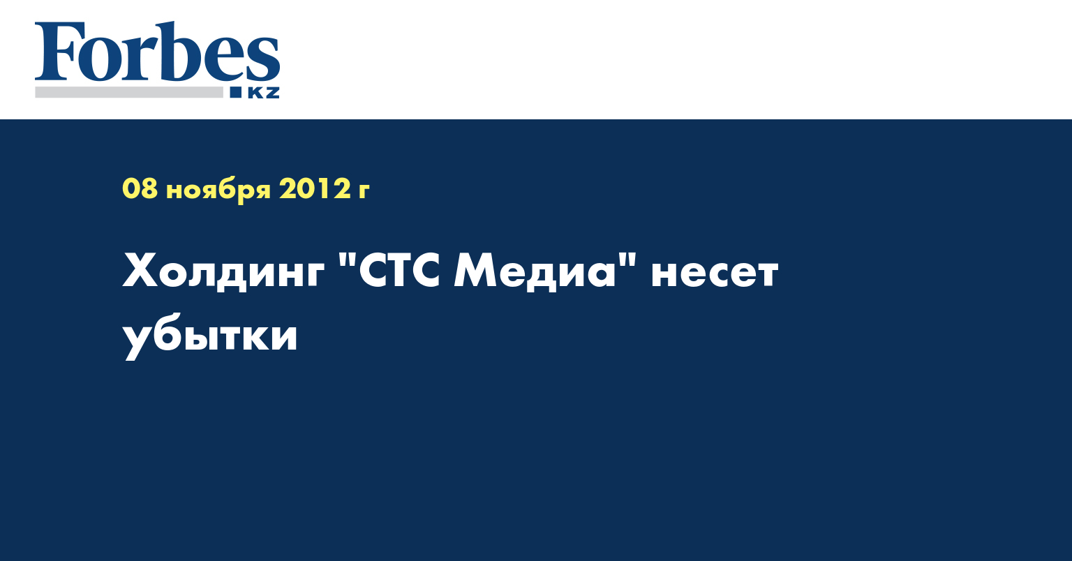 Холдинг "СТС Медиа" получил в третьем квартале убыток в размере 38,48 миллиона долларов, в то время как по итогам аналогичного периода прошлого года компания заработала чистыми 16,393 миллиона долларов. Об этом сообщается в пресс-релизе, поступившем в "Ленту.ру".