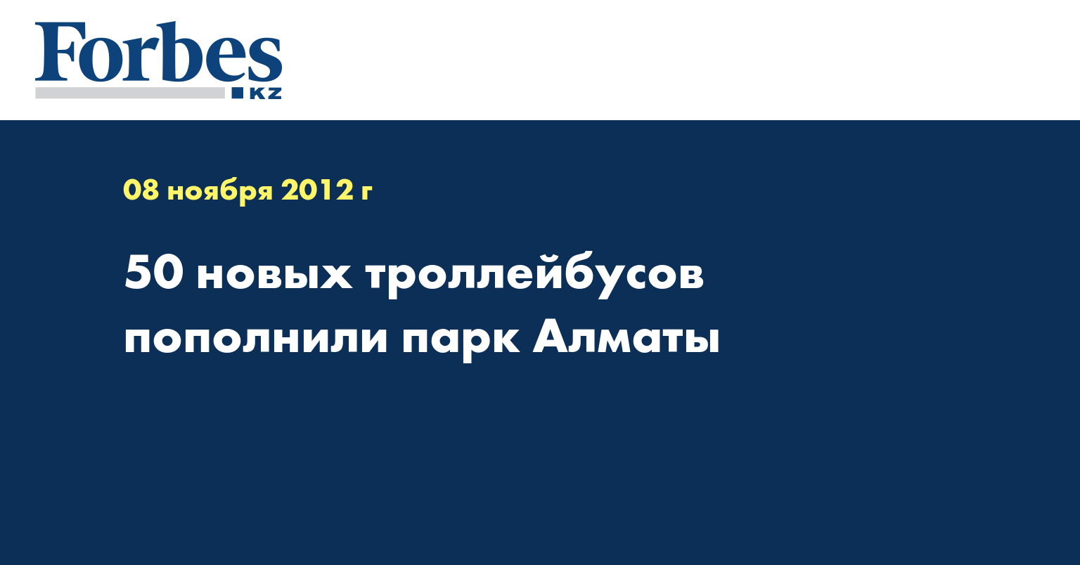 50 новых троллейбусов пополнили парк Алматы и скоро выйдут на линии города, сказал аким Алматы Ахметжан Есимов корреспондентам КазТАГ.