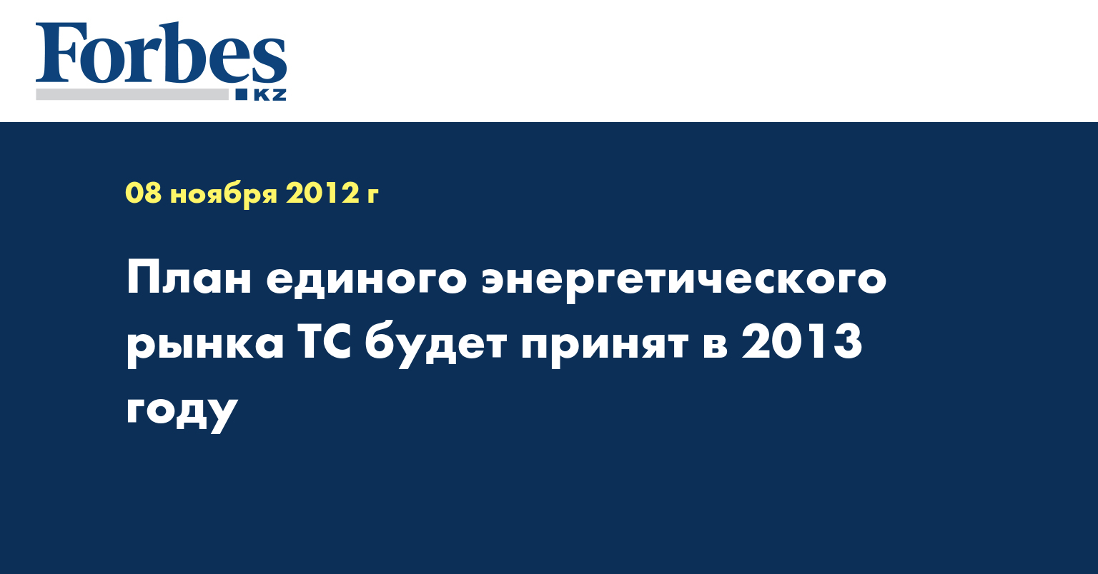 «В министерстве он (план - КазТАГ) еще не был рассмотрен, мы пока будем работать с комиссией (Евразийской экономической комиссией - КазТАГ), вместе с нашими партнерами. Безусловно, еще предстоит ряд встреч как в Москве, так и в Минске и Астане… В 2013 план, безусловно, будет принят», - сказал Б. Джаксалиев корреспонденту агентства на VIII республиканском совещании энергетиков в четверг.