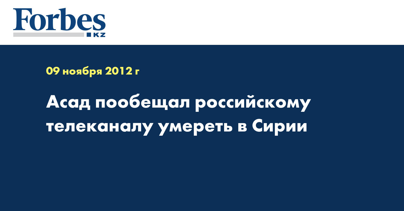 Интервью российскому телеканалу стало первым, которое Асад дал с июля 2012, когда он беседовал с журналистами немецкого ARD. Когда и где Асад дал интервью Russia Today, неясно. Полностью его можно будет посмотреть в эфире телеканала 9 ноября.