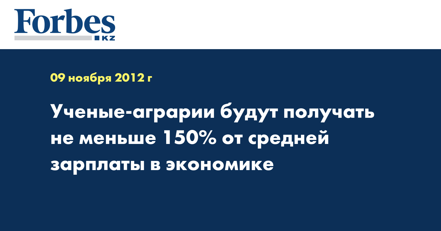 «В связи с планируемым ростом финансирования сельскохозяйственных исследований планируется установить с 2014 года минимальный размер заработной платы научных работников в размере не менее 150% от среднемесячной заработной платы в экономике, инженерно-технического персонала не менее среднемесячной заработной платы в экономике», - говорится в пресс-релизе АО «КазАгроИнновация», распространенном в пятницу и процитированном КазТАГ.