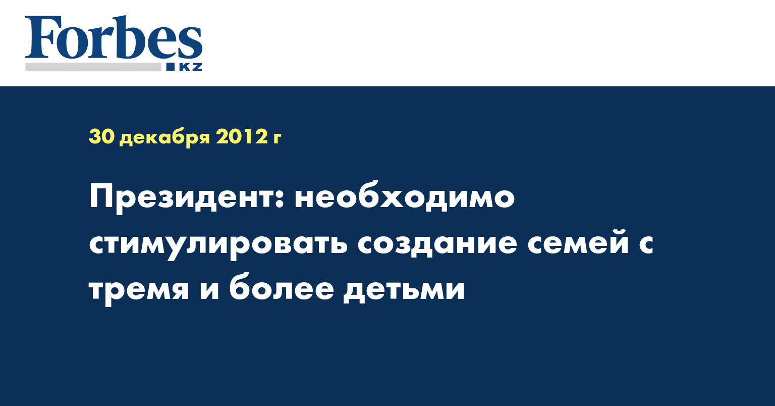 В Казахстане необходимо стимулировать создание семей с тремя и более детьми, считает президент РК Нурсултан Назарбаев.
