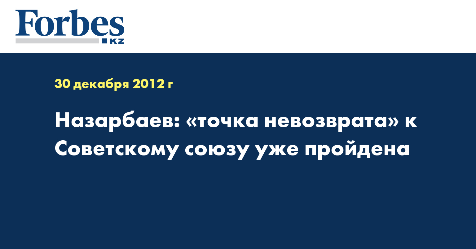 «Таможенный союз, Единое экономическое пространство и Евразийский экономический союз состоится и будет работать на пользу, это выгодно Казахстану. Никакого Советского союза никто создавать не собирается. Ну, а кто хочет возвратиться к Советскому союзу, у того действительно мозгов нету, потому что это уже невозможно. «Точка невозврата» уже пройдена», - сказал глава государства на встрече с журналистами в Ак орде, передает КазТАГ.