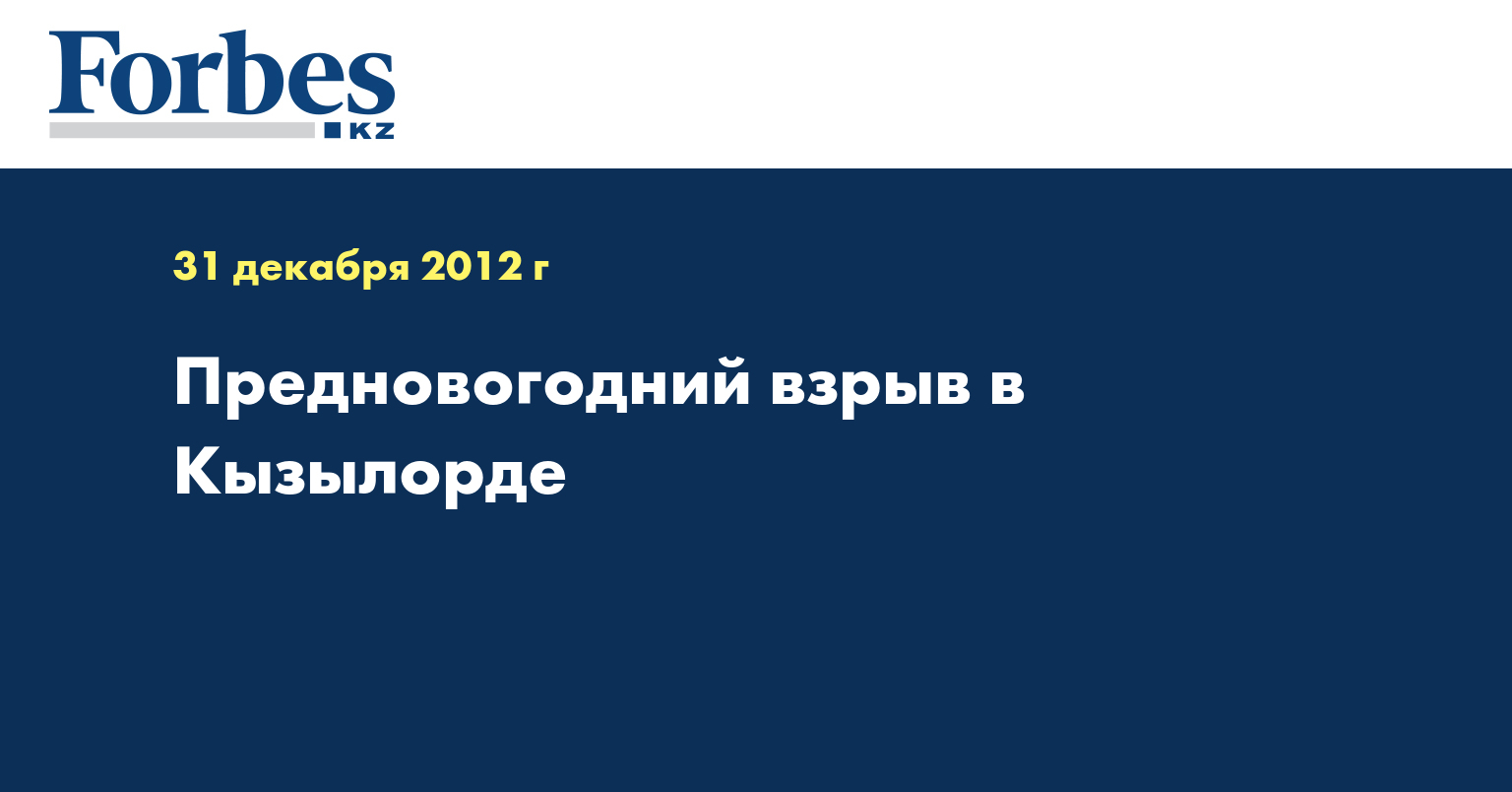 «31 декабря в 05 ч 35 мин в Кызылорде в частном жилом доме по ул. Кеншинбаева произошел взрыв природного газа без последующего горения. В результате взрыва обрушены стены и потолочные перекрытия дома, госпитализированы с различными ожогами и травмами в ОМЦ Космуратова Б. 1974 г.р., Тулеген Назерке 2000 г.р. и Акдаулетов Данияр 1994 г.р., который доставлен в городскую больницу Кызылорды», - говорится в сообщении ДЧС, которое цитирует КазТАГ.