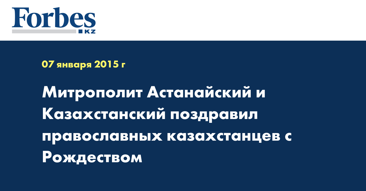 Глава Митрополичьего округа Русской православной церкви в Республике Казахстан митрополит Астанайский и Казахстанский Александр поздравил православных христиан с Рождеством, передает Казинформ.