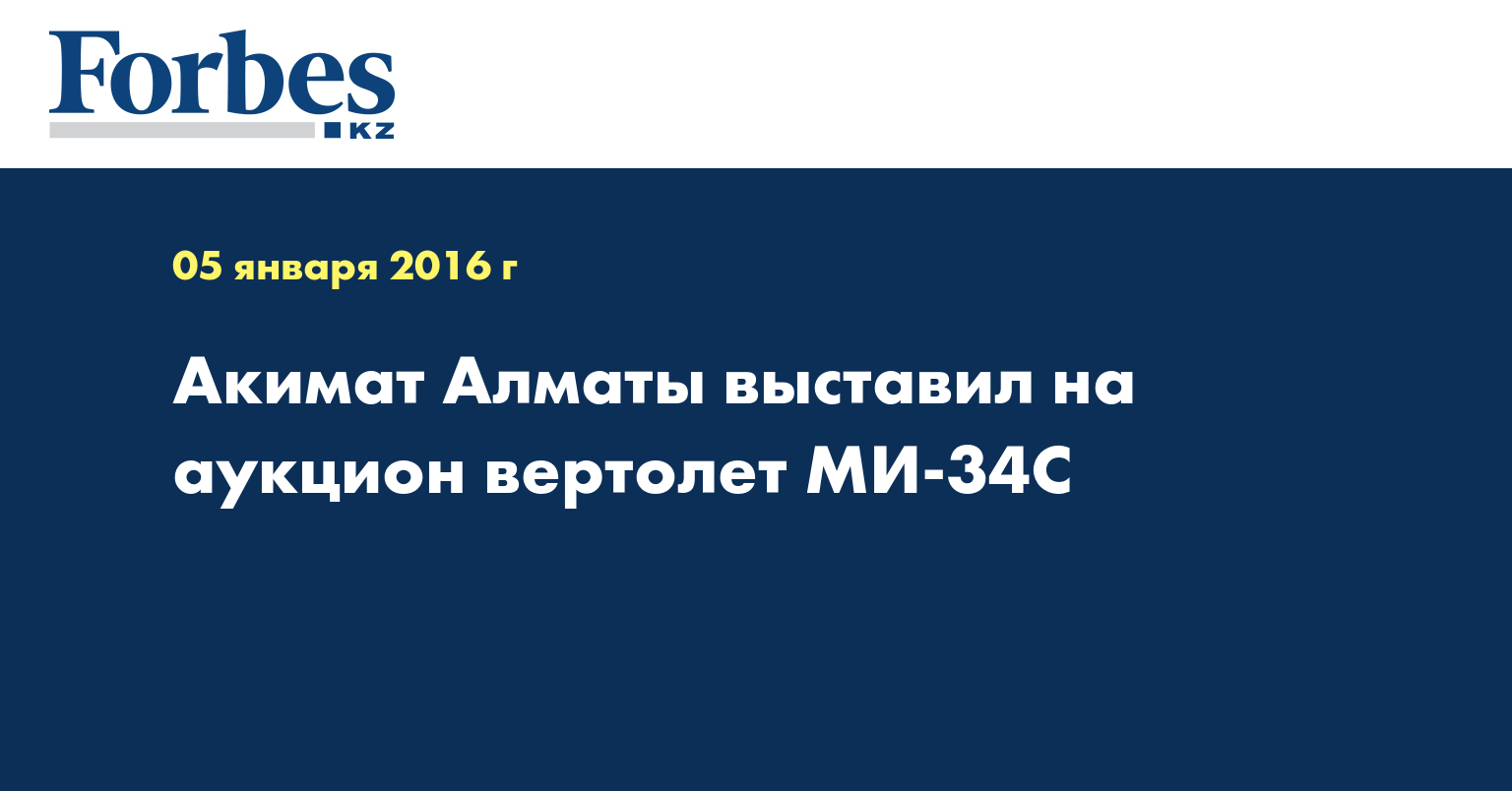 Акимат Алматы выставил на продажу вертолет МИ-34С 2002 года выпуска, сообщает Казинформ.