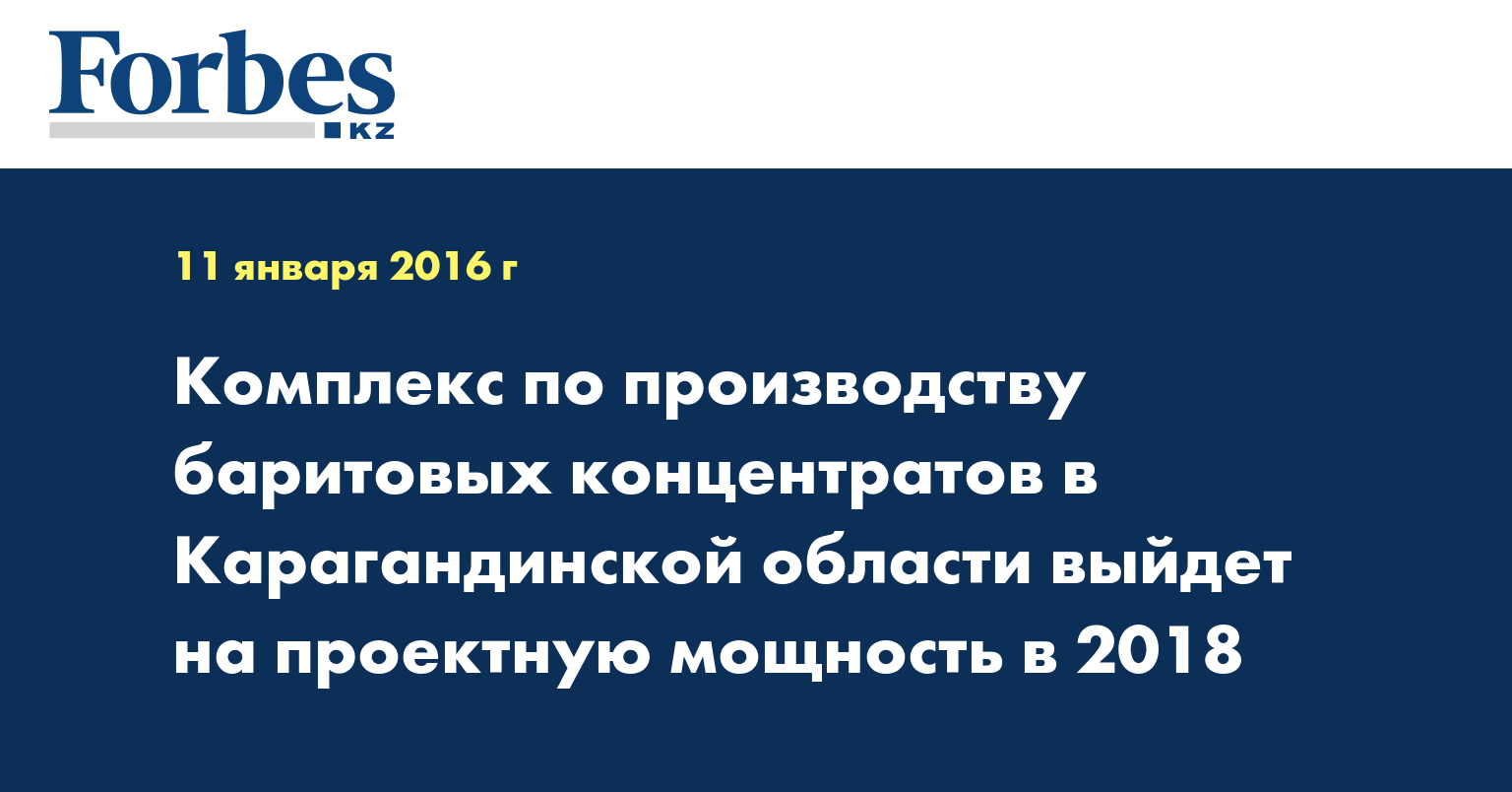 Комплекс по производству баритовых концентратов ТОО "Karazhal Operating", запущенный в декабре 2015 года в рамках карты индустриализации, выйдет на проектную мощность в 2018 году, сообщает ИА Новости-Казахстан со ссылкой на министерство по инвестициям и развитию Казахстана.