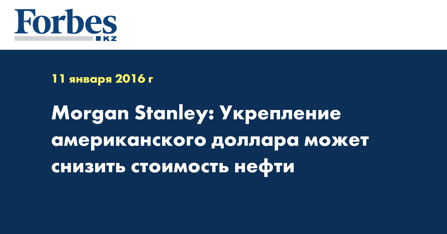 Быстрое укрепление американской валюты может привести к падению стоимости нефти до $20/барр., считают аналитики Morgan Stanley.