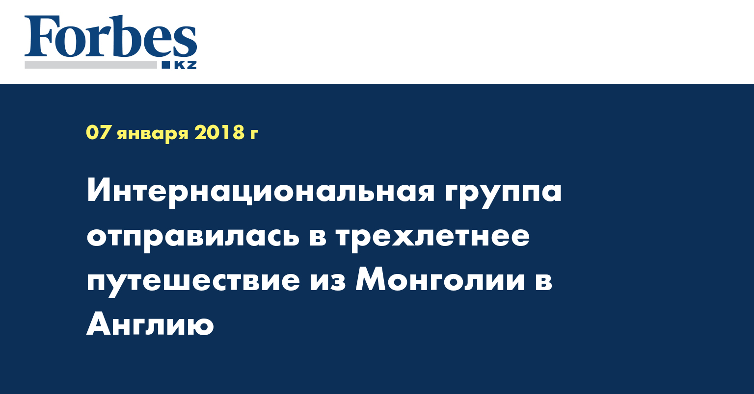 Необычное путешествие стартовало в Монголиии. Интернациональная группа из 7 путешественников во главе с монгольской девушкой Н.Байгалмаа отправилась в Великобританию на верблюдах, передает МИА «Казинформ». Главной целью путешествия является популяризация монгольской культуры и истории за рубежом.