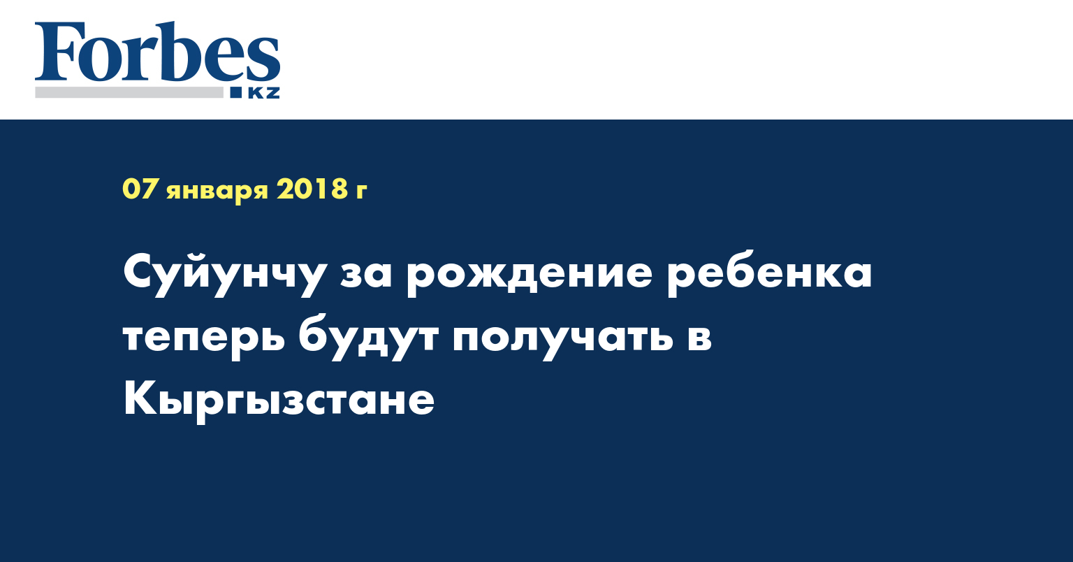 В Кыргызстане 1 января вступил в силу закон о выплате суйунчу за рождение ребенка, передает МИА «Казинформ». Его размер составляет 4 тысячи сомов (около 19 000 тенге), в высокогорных районах - 6 тысяч (около 28 000 тенге).