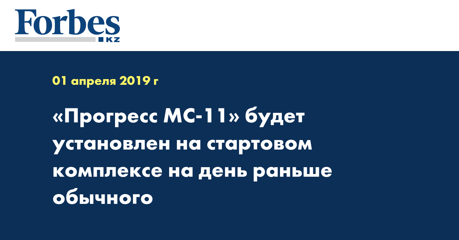 Старт с космодрома Байконур РН «Союз 2.1а» с кораблем «Прогресс МС-11» назначен на 4 апреля 2019 года, в 17 часов 01 минуту по времени Нур-Султана. Это будет первый запуск космического грузового корабля к МКС в 2019 году.