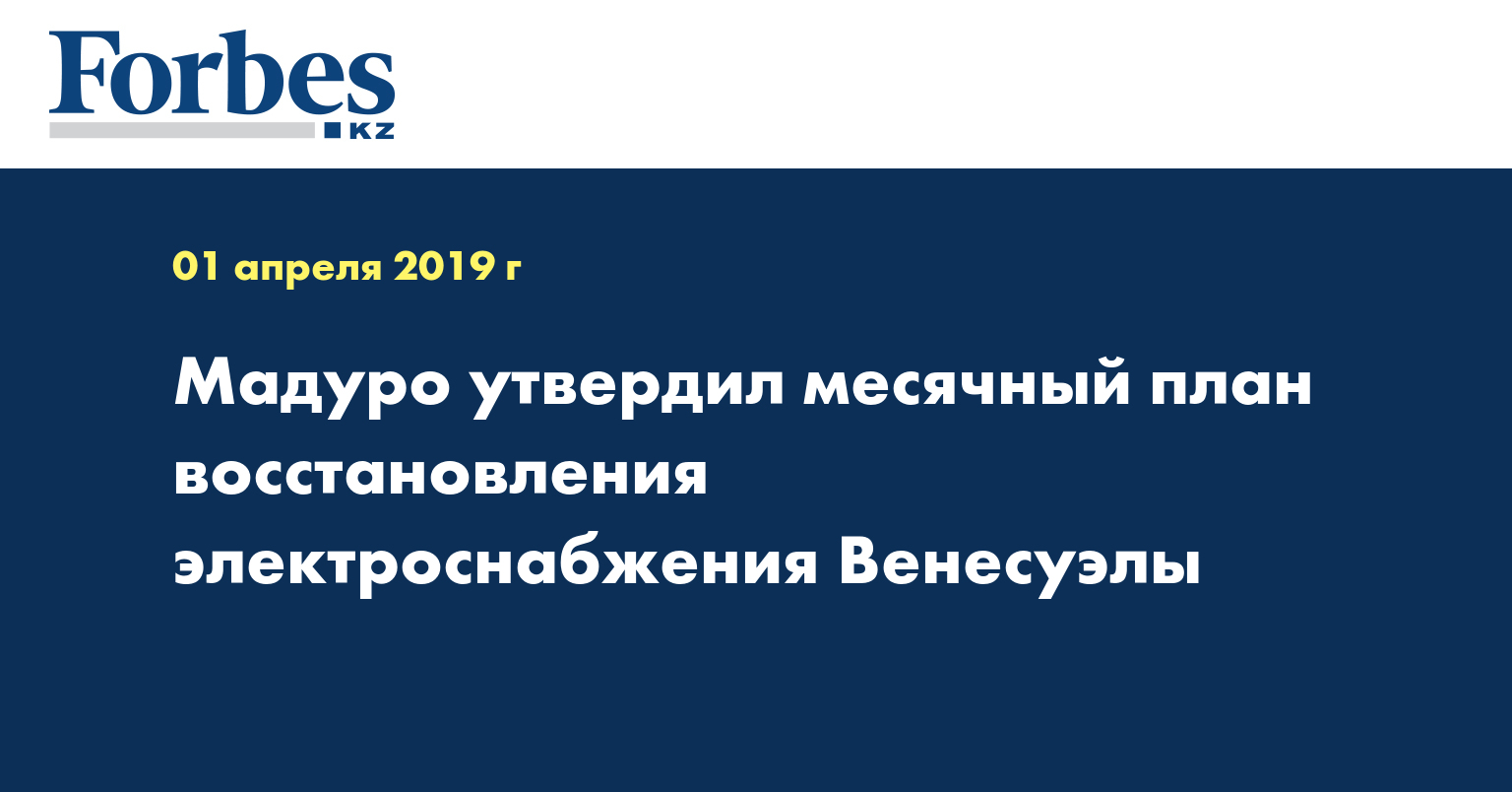 "Был принят месячный план действий, призванный обеспечить гарантированное электроснабжение, процесс генерации электроэнергии", - заявил Мадуро в обращении к нации. По его словам, план предусматривает "регулирование нагрузки" на электросети.