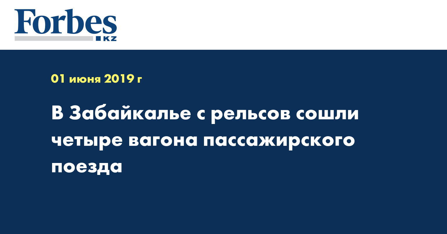 Четыре вагона пассажирского поезда Новосибирск - Владивосток в субботу утром сошли с рельсов в Забайкалье. Как передает ТАСС со ссылкой на пресс-службу Забайкальской железной дороги, по предварительным данным никто не пострадал.