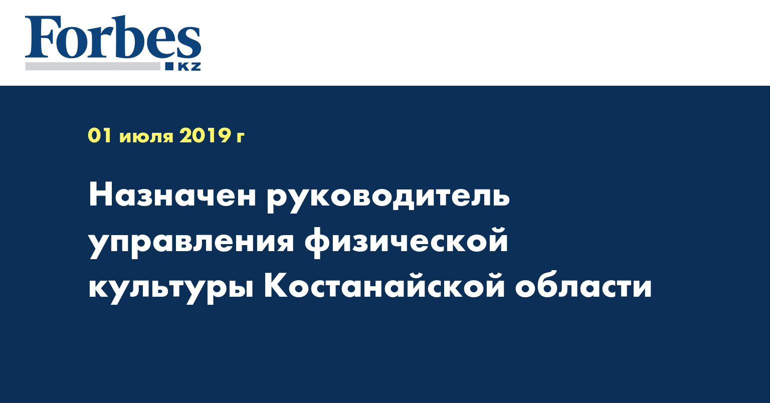 Как сообщили в пресс-службе акима области, Азамат Бегалин назначен руководителем управления физической культуры и спорта распоряжением акима Костанайской области от 26 июня текущего года.
