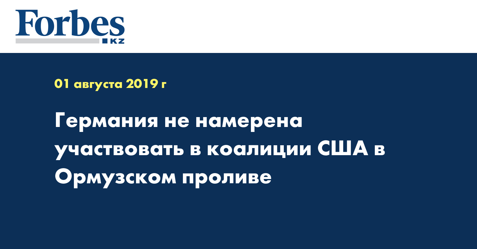 Ранее агентство dpa распространило заявление посольства США в ФРГ о том, что Вашингтон официально предложил Берлину присоединиться к коалиции по охране безопасности в Ормузском проливе. В МИД ФРГ позже заявили РИА Новости, что участие в американской стратегии максимального давления в Персидском заливе не рассматривается Берлином.