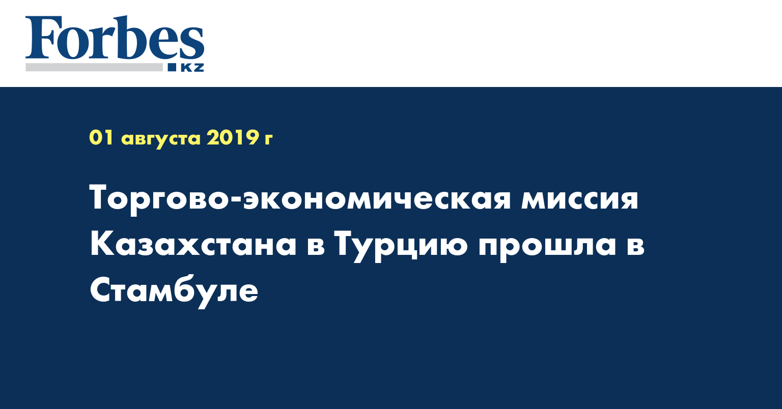 31 июля в Стамбуле при поддержке Посольства Казахстана в Турции, Министерства индустрии и инфраструктурного развития РК, Национальной палаты предпринимателей РК «Атамекен», Внешнеторговой палаты Казахстана и Союза торговых палат и товарных бирж Турции была проведена торгово-экономическая миссия казахстанских экспортеров, передает МИА «Казинформ» со ссылкой на МИД РК.