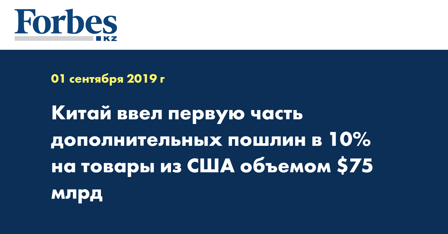 1 сентября США ввели дополнительные пошлины в размере 15% на товары из КНР стоимостью $112 млрд. Вторая часть сборов вступит в силу 15 декабря. Как заявил президент США Дональд Трамп, такое решение было принято в связи с тем, что Пекин не выполнил обещание увеличить закупки американских сельскохозяйственных товаров.