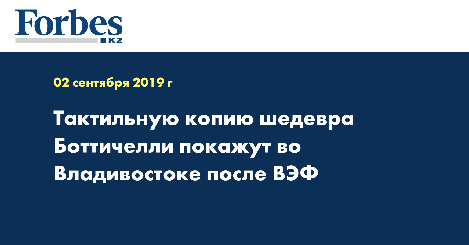 Картина Боттичелли "Мадонна делла Лоджиа" ("Мадонна с младенцем"), написанная в ХV веке, украсит культурную программу Восточного экономического форма-2019, а с 8 сентября этот шедевр и его тактильная копия будут размещены на выставке в Приморской государственной картинной галерее, сообщила РИА Новости ее директор Алена Даценко, передает РИА Новости.