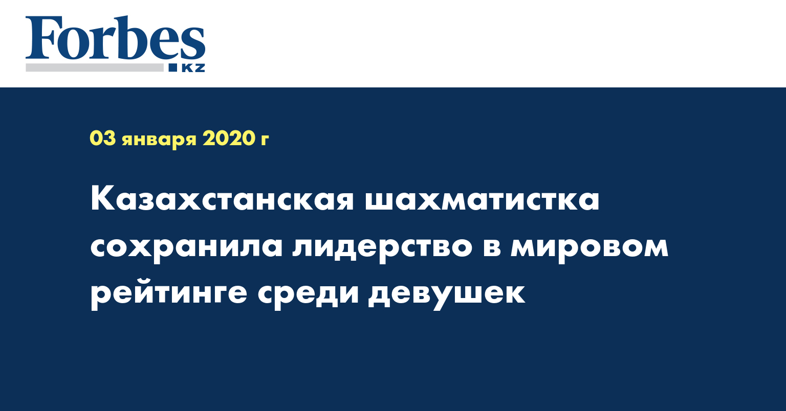 На 1 января 2020 года 19-летняя казахстанская шахматистка, являющаяся международным гроссмейстером среди женщин и мужским международным мастером, сохранила первую строчку в мировом рейтинг-листе среди девушек Международной шахматной федерации (ФИДЕ) по всем трем видам шахмат: классике, рапиду и блицу.