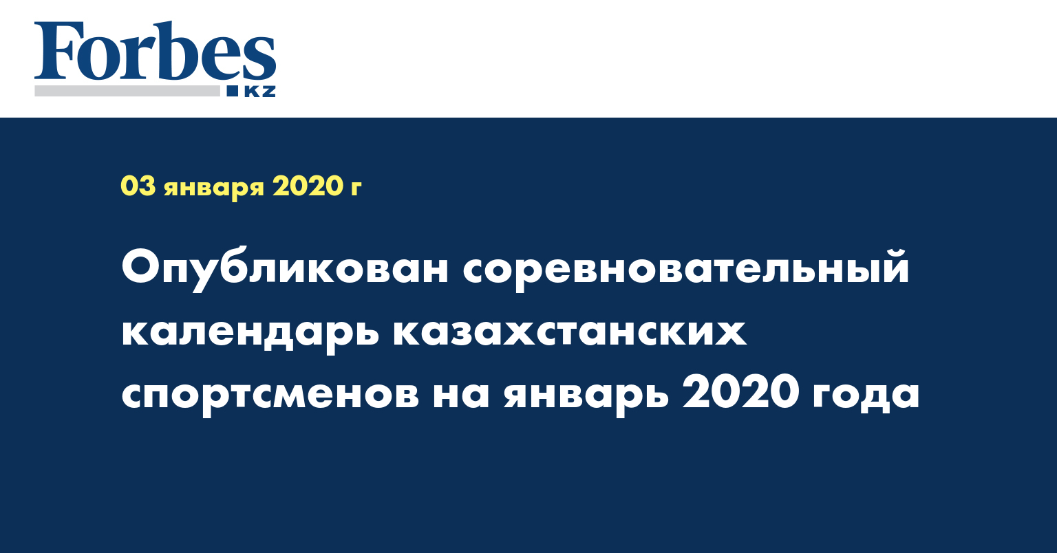 Национальный Олимпийский комитет опубликовал спортивный календарь на январь 2020 года, передает МИА «Казинформ» со ссылкой на официальный сайт НОК РК.