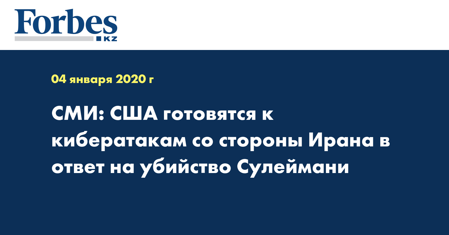 По их словам, американские власти «испытывают особую обеспокоенность» в связи с возможным проведением Тегераном кибератак. Такой шаг они считают «наиболее вероятным» в ответ на убийство иранского генерала.