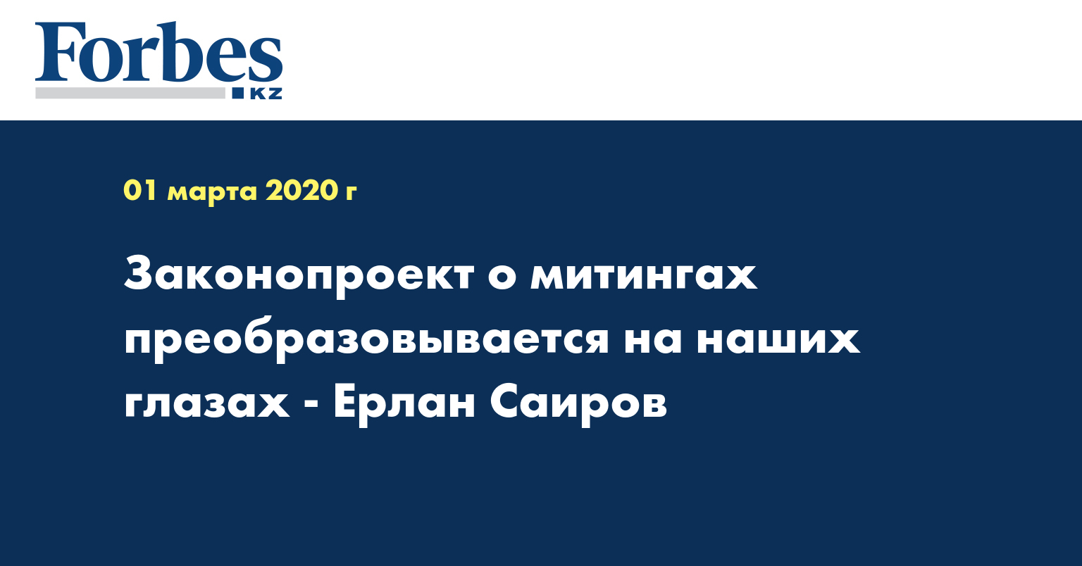 По мнению Ерлана Саирова, разработчики законопроекта учли многие пожелания и замечания гражданского общества. Ранее Президент РК Касым-Жомарт Токаев в эксклюзивном интервью порталу Informburo заявил, что он считает «нецелесообразным введение ограничений для участников уведомительных мирных собраний в количестве 250 человек».