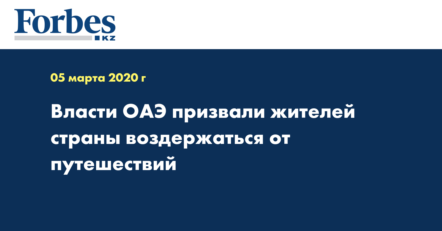 Министерство здравоохранения и профилактики ОАЭ призвало эмиратских подданных и проживающих в стране иностранных резидентов воздержаться от выездов за границу в связи с распространением нового типа коронавируса, говорится в сообщении Минздрава в Twitter, передает РИА Новости.