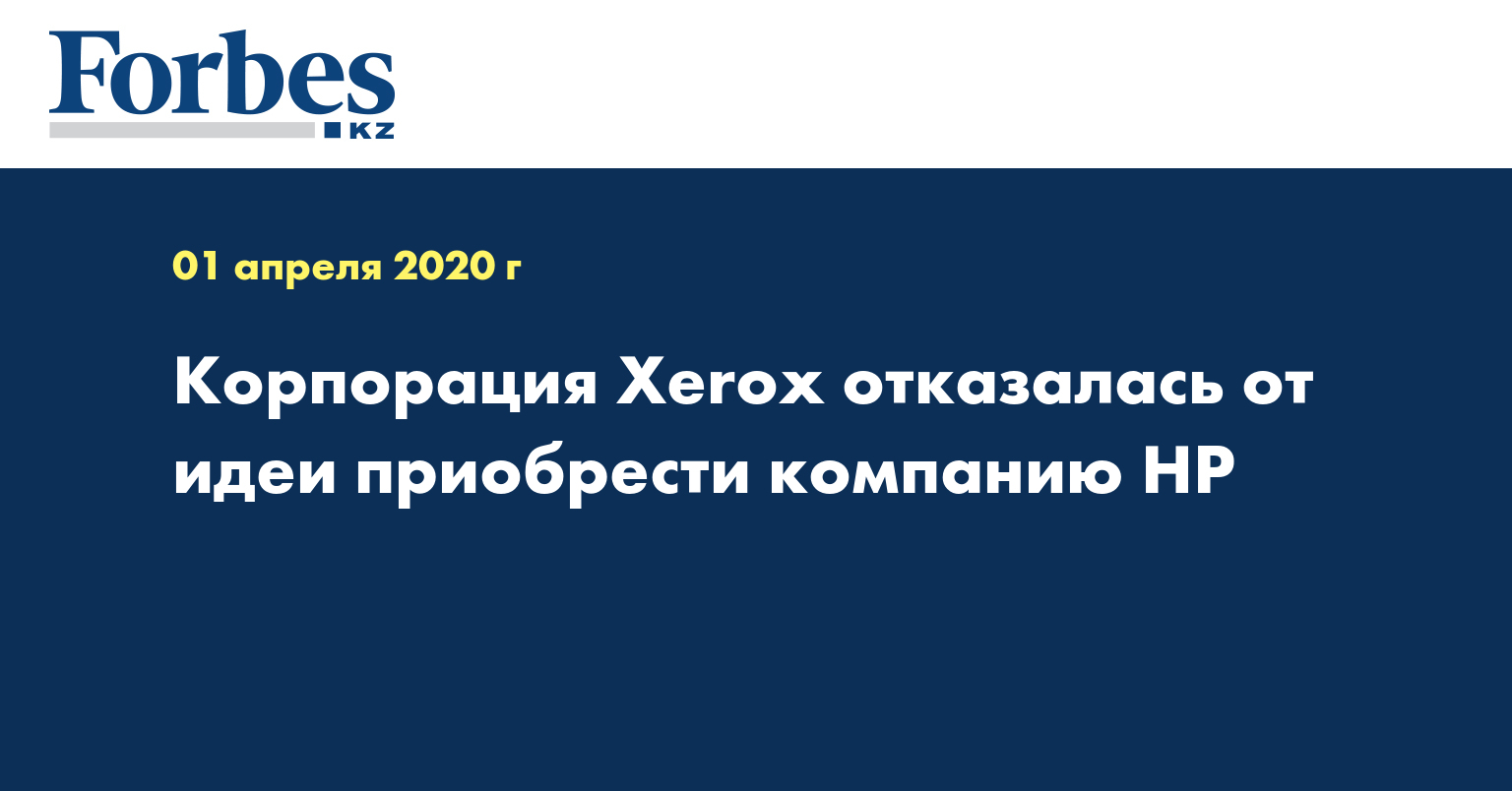 "Текущий глобальный кризис здравоохранения и вытекающие макроэкономические и рыночные потрясения, вызванные COVID-19, создали ситуацию, которая не способствует тому, чтобы Xerox продолжала попытки приобрести HP Inc", - говорится в заявлении Xerox, которое цитирует телеканал.