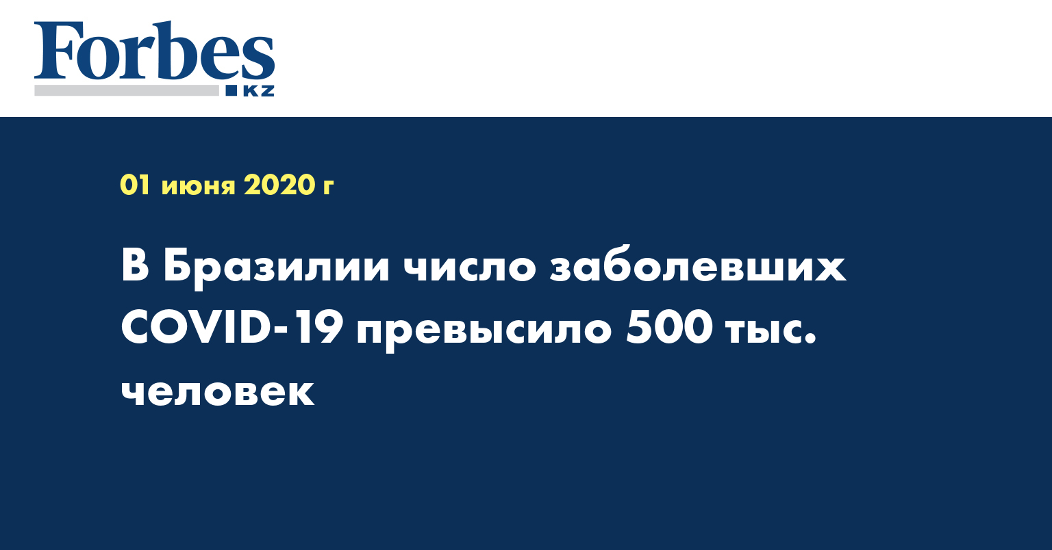 Число выявленных случаев заражения коронавирусом в Бразилии превысило 500 тысяч, скончались более 29 тысяч человек, сообщает министерство здравоохранения страны, передает РИА Новости.