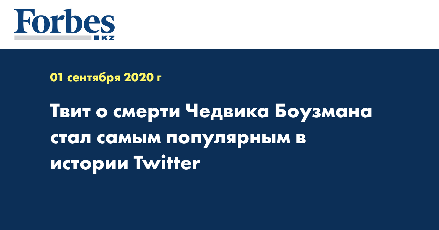 Твит о кончине американского актера Чедвика Боузмана, скончавшегося в пятницу в возрасте 43 лет, стал самым популярным в истории Twitter, говорится в сообщении социальной сети.