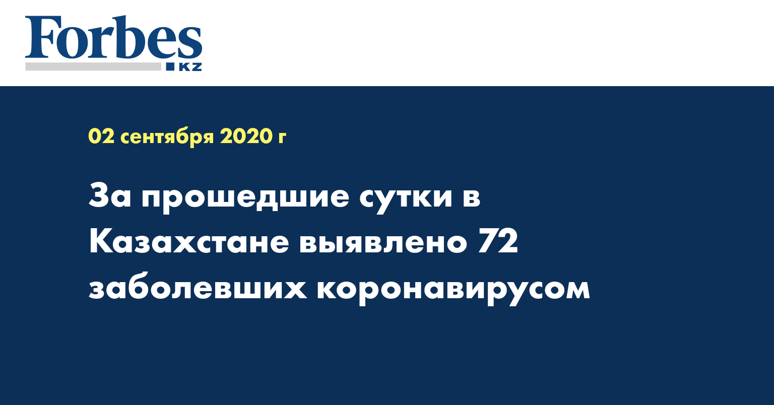 За прошедшие сутки в Казахстане выявлены 72 заболевших коронавирусной инфекцией. Из них 14 без клинических проявлений, передает МИА «Казинформ» со ссылкой на специальный сайт сoronavirus2020.kz.