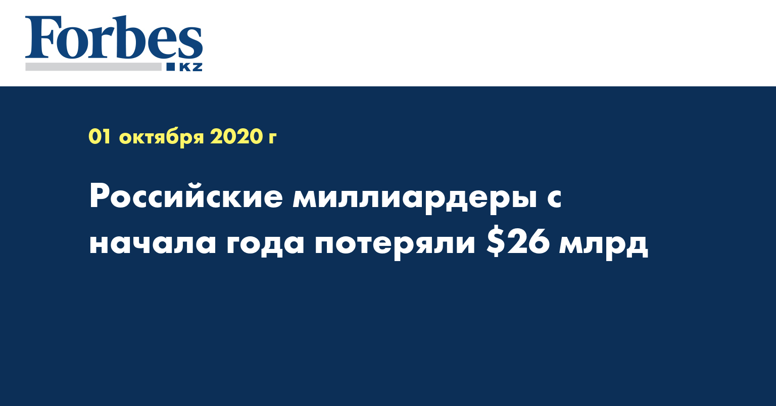 Совокупное состояние богатейших россиян с начала 2020 года снизилось на 26 миллиардов долларов, больше всего потерял совладелец "Лукойла" Вагит Алекперов - 7,2 миллиарда долларов, подсчитало РИА Новости на основании данных рейтинга Bloomberg Billionaires Index (BBI).