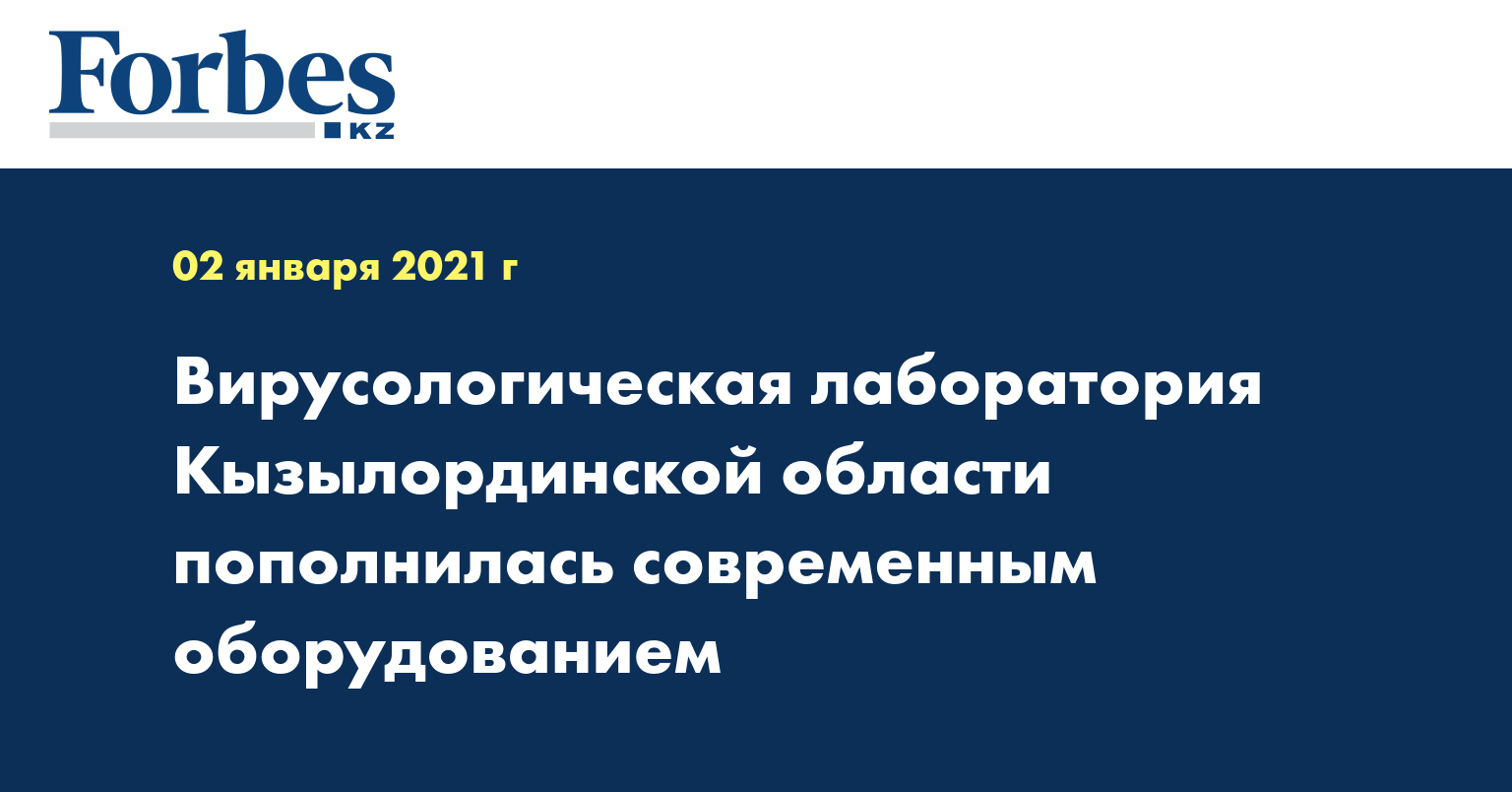 Вирусологическая лаборатория Кызылординской области пополнилась современным оборудованием, передает МИА «Казинформ» со ссылкой на Telegram-канал МВК по нераспространению COVID-19.
