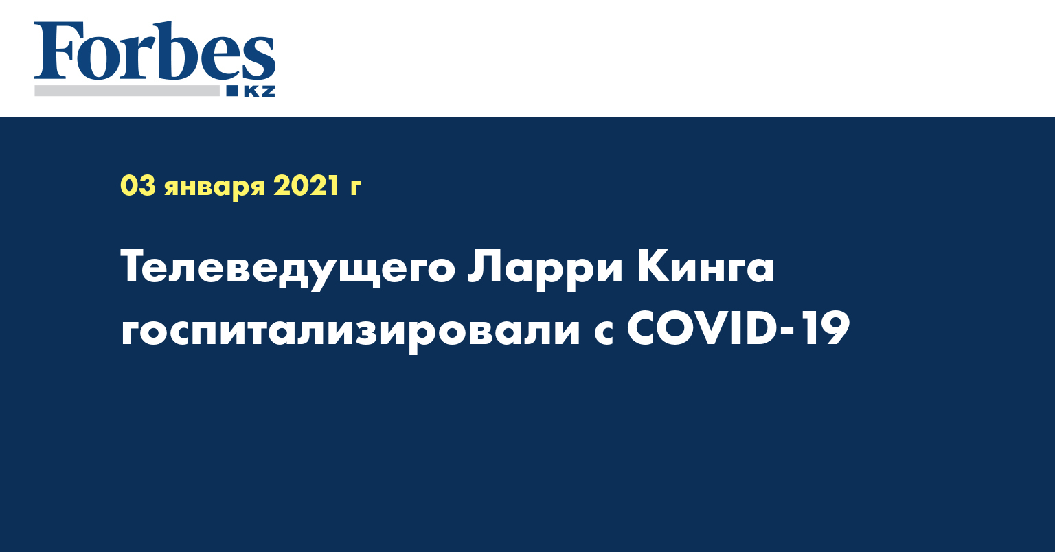 Американский телеведущий Ларри Кинг госпитализирован после того, как его тест на коронавирус дал положительный результат, сообщает РИА Новости со ссылкой на телеканал ABC.